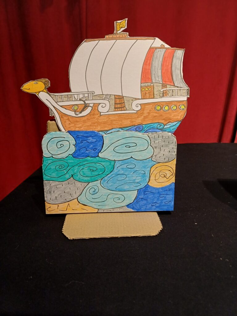 L’apparition du navire volant est également racontée avec des petits automates manuels : L’histoire de Vania, jeune paysan qui eut besoin d’un navire volant pour épouser la fille du tsar et qui trouva sur sa route des compagnons aux talents fort précieux : Grandes-jambes, Bon-oeil, Gros-mangeur,…
